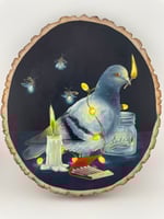 This painting measures about 10" tall and is hand painted with oils on wood. All my paintings come with metal hardware attached making it ready to hang, it is also autographed and dated.
