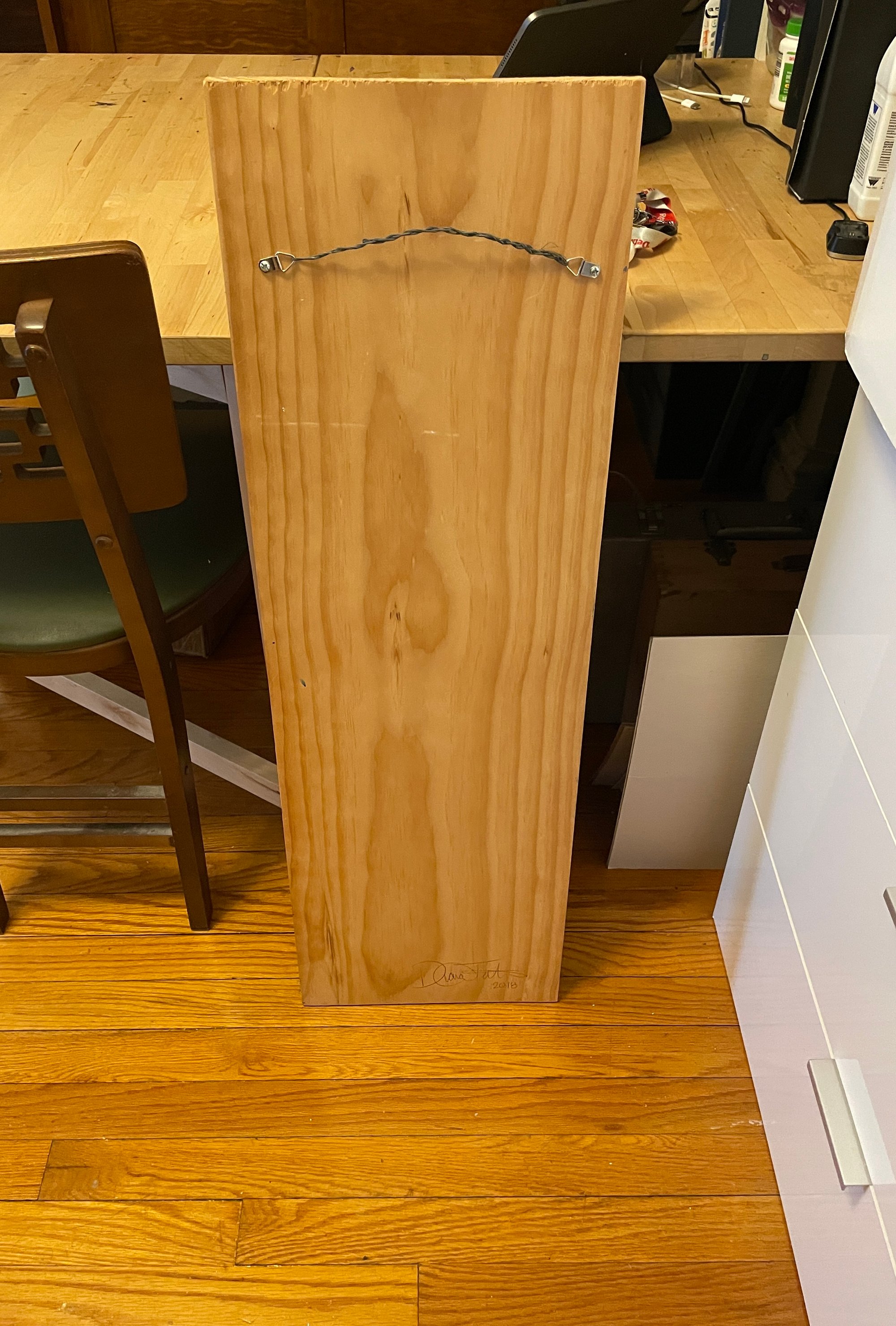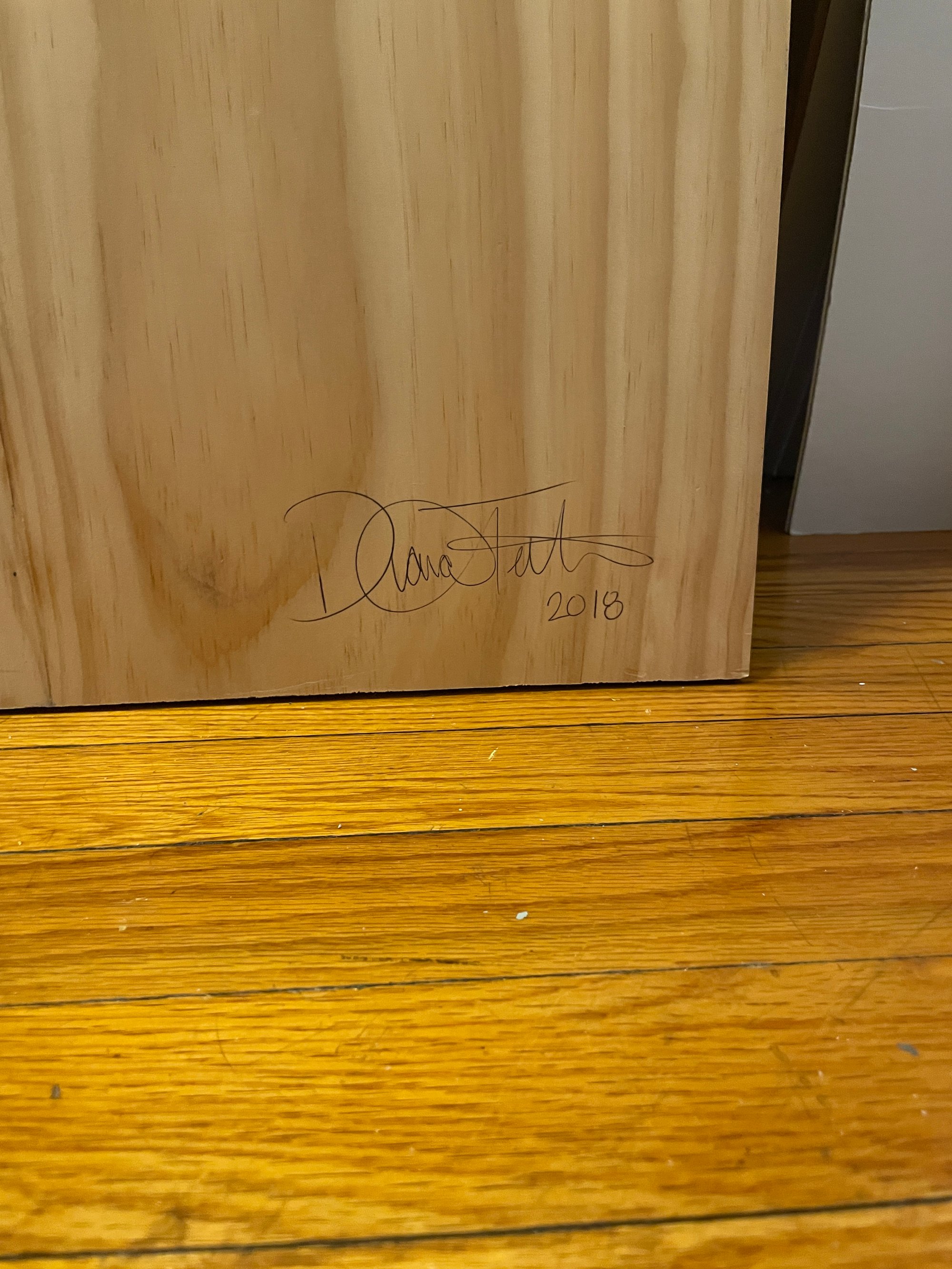 This painting measures about 36" high by 11" wide and is hand painted with acrylics on wood. This was painted in 2018. It is autographed and dated.