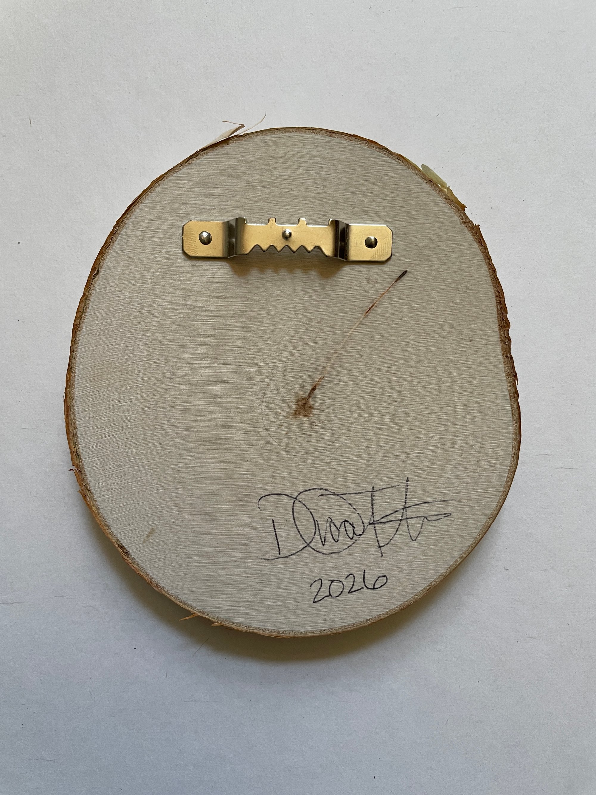 This painting measures about 4" high and is hand painted with oils on wood. It is autographed and dated.