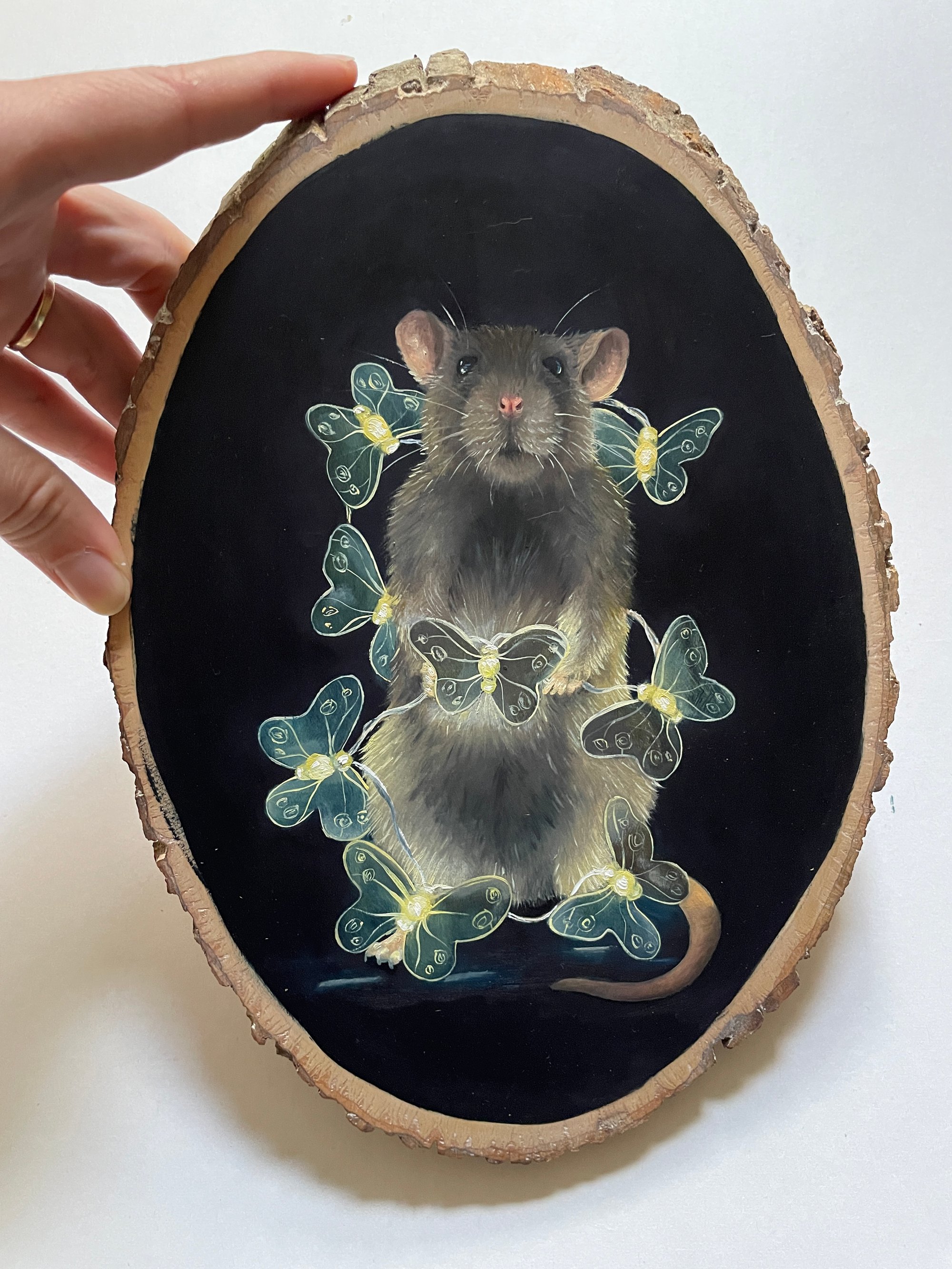 This painting measures about 8" x 6" and is hand painted with oils on wood. All my paintings come with metal hardware attached making it ready to hang, it is also autographed and dated.