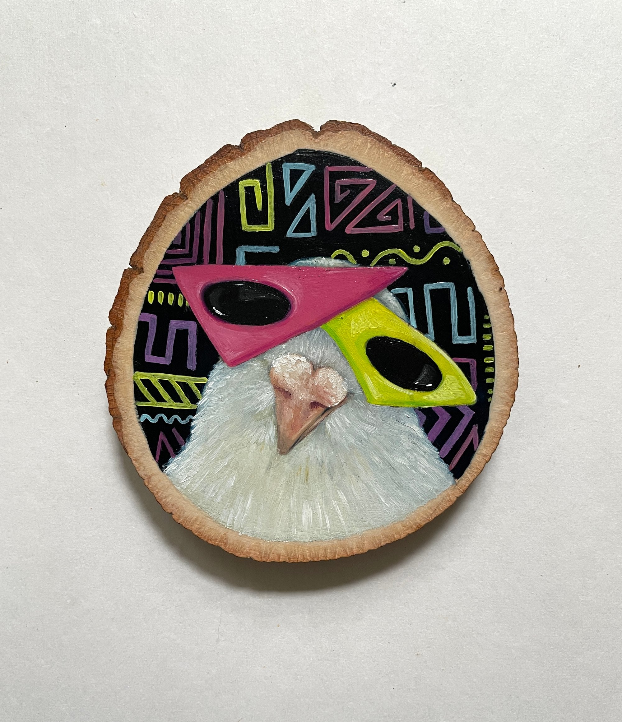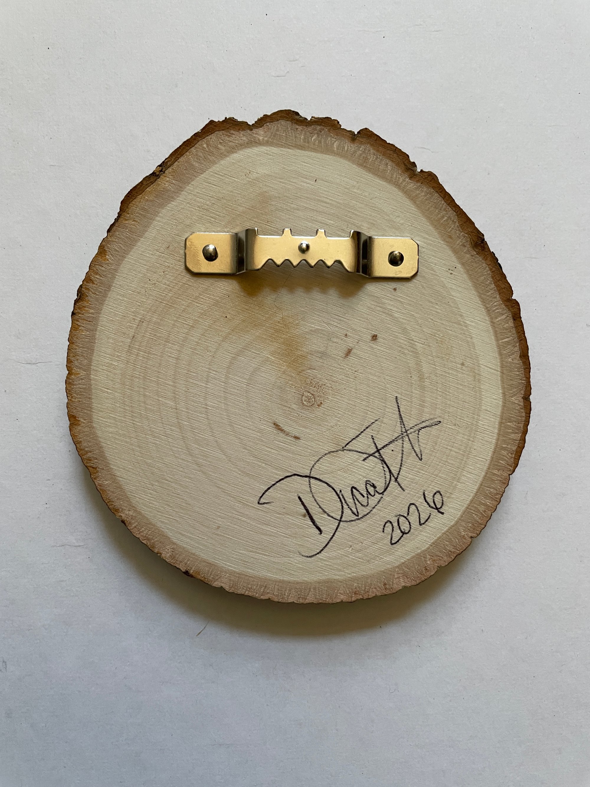 This painting measures about 4" high and is hand painted with oils on wood. It is autographed and dated.