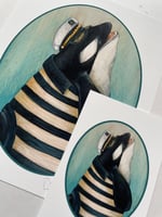This is a high quality giclee print on Somerset Velvet paper. The print is avalible in two sizes (4" x 6" or 8" x10") and comes in a protective sleeve. Each print is autographed - it is an open edition.