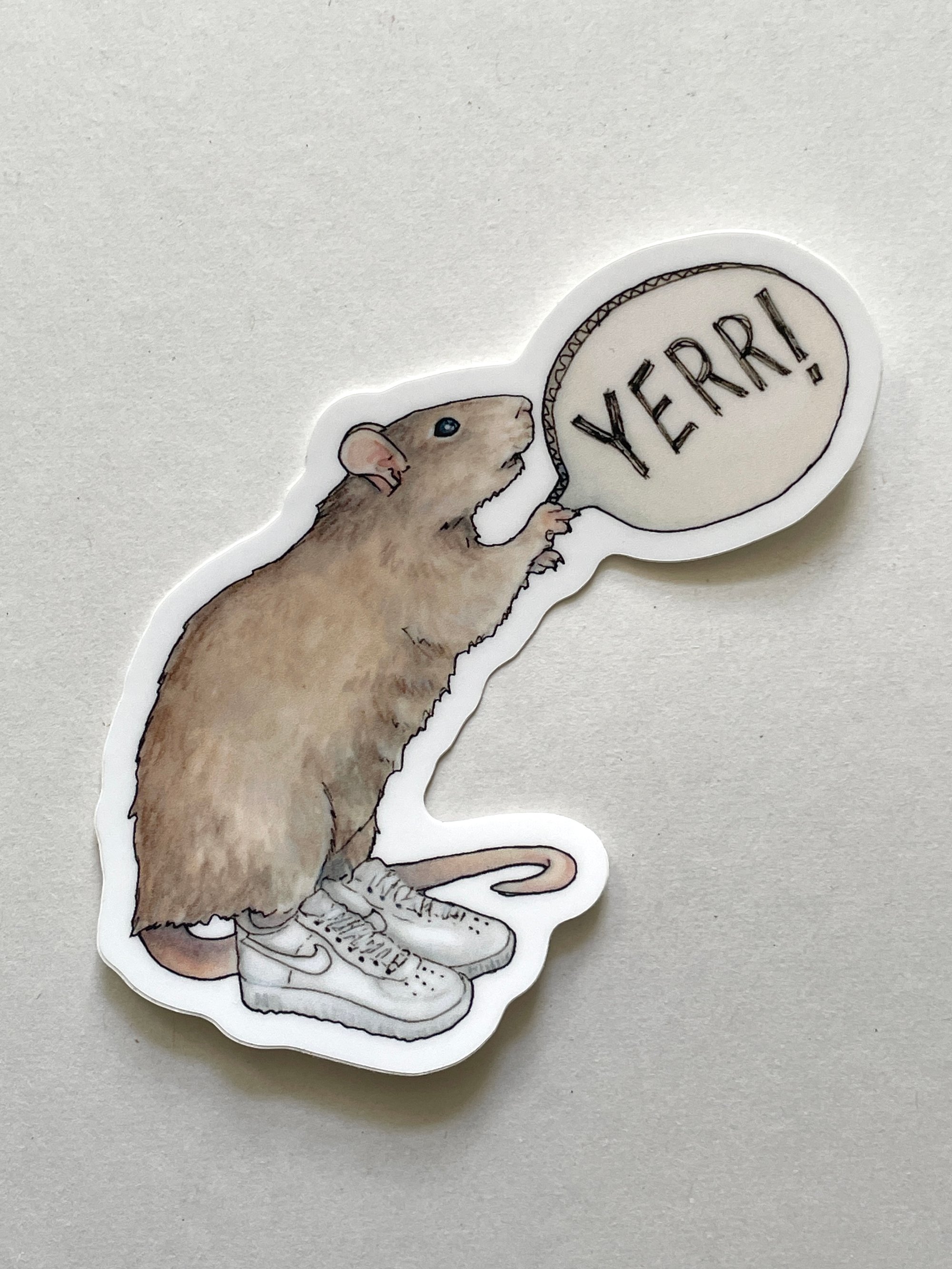 This sticker is made from high quality vinyl with a durable UV coat. It measures about 2.25" high.